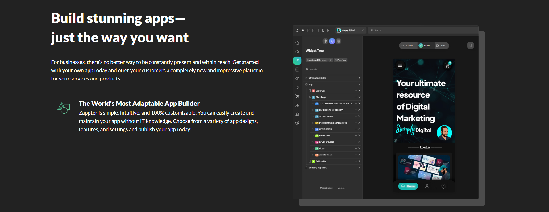 Zappter is redefining the future of low-code development and revolutionizing the way applications are built. π Whether you're a startup, an established company, or a solo entrepreneur, Zappter lets you build stunning, native mobile apps for iOS and Android, as well as progressive web apps (PWAs), without writing a single line of code. Our platform is designed to transform the most complex into unmatched simplicity and speed. Discover over 150 available plugins, hundreds of professional designs, and an intuitive drag-and-drop interface that enables anyone to bring their app ideas to life in minutes.